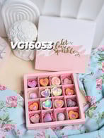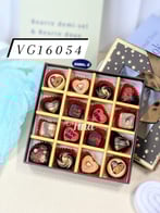 Đáng chú ý hơn là hộp vuông đại 16 viên, lựa chọn hoàn hảo cho những ai muốn mang đến sự bất ngờ lớn hơn. Hộp mang bố cuc hài hòa này chứa đựng sự đa dạng hơn về hương vị chocolate và nhân khác nhau, từ đen đắng nhẹ đến sữa hay trắng ngọt ngào, phù hợp với nhiều đối tượng.
